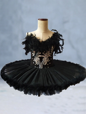 Ballettkleid Schwarz Mädchen Kinder Ballerina Federn Rüschen Spitze Polyester Kleid Tanzkleidung & Kostüme > Kostüme > Tanz Kostüme > Ballett Kostüme