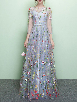Ballkleid A-Linie Juwel-Ausschnitt Spitze halbe Ärmel Partykleider & Hochzeit > Anlass Kleider > Ballkleider