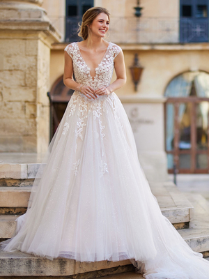 Ballkleid Brautkleid A-Linie mit Schleppe V-Ausschnitt Kurze Ärmel Natürliche Taille Spitze Spitzen-Brautkleider & Hochzeit > Brautkleider > Brautkleider Prinzessin