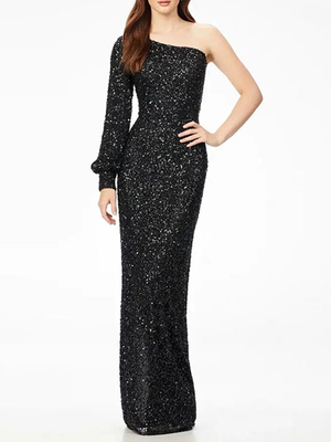 Ballkleider Mermaid- Ball kleider Blaugrün Hochzeit und Pailletten bestickt ärmellos Einschulter Anlass Kleider und Reißverschluss bodenlang & Hochzeit > Anlass Kleider > Ballkleider