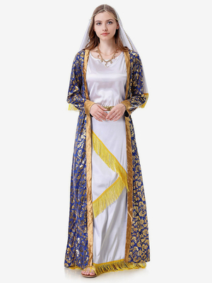 Blauer Damen-Retromantel mit Kopfbedeckung und Blumendruck Urlaubskostüme & Kostüme > Kostüme > Vintage Kostüme > Damen Mittelalter Kleidung