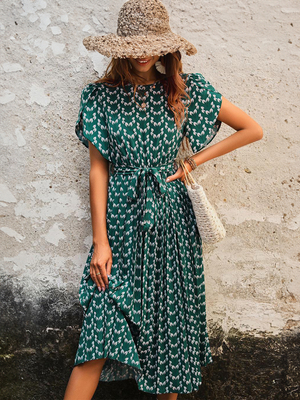 Blumenkleid Midi-Kleid Kleider Stretch-Schärpe Juwel-Ausschnitt kurze Ärmel böhmischer Sommer & Damenmode > Kleider > Bohemian Kleider