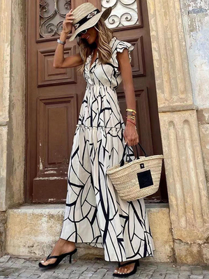 Blumenkleid mit V-Ausschnitt und Rüschenärmeln langes Sommerkleid für Frauen 2025 & Damenmode > Kleider > Bohemian Kleider