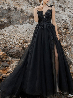 Brautkleider Schwarz Spitze Herz-Ausschnitt ärmellos Schwarz Vintage Brautkleid & Hochzeit > Brautkleider > farbige Brautkleider