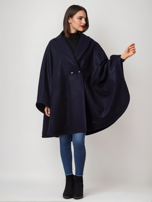 Cape-Mantel aus Wollmischung dunkelblau Revers übergroßer Poncho Winter-Oberbekleidung für Frauen 2025 & Damenmode > Mäntel > Cape & Poncho & Schal
