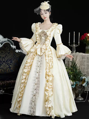 Champagnerfarbenes Retro-Kostüm mit Schleifen aus Polyester Marie-Antoinette-Kostümkleid für Damen im Rokoko-Stil des 18. Jahrhunderts & Kostüme > Kostüme > Vintage Kostüme > Damen Mittelalter Kleidung ...