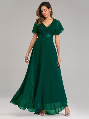 Chiffon-Abschlussballkleider V-Ausschnitt kurze Ärmel halbformelles Maxikleid & Damenmode > Kleider > Party Kleider