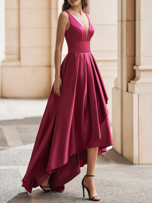 Cocktailkleid Wunderschönes A-Linien-Partykleid aus Satin mit V-Ausschnitt kostenlose Anpassung & Hochzeit > Anlass Kleider > Cocktailkleider