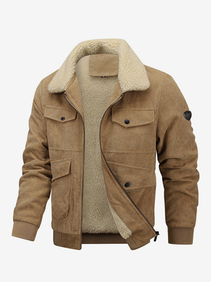 Cordjacke in Übergröße für Herren Wintermantel mit Fleecefutter und vier Klapptaschen vorne & Herrenmode > Herren Jacken & Mäntel > Herrenjacken