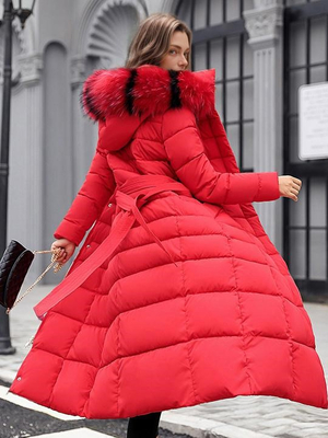 Damen Wintermantel mit Gürtel; abnehmbarem Kunstpelzkragen und Kapuze & Damenmode > Mäntel > Wintermäntel