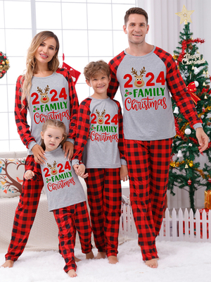 Familien-Weihnachtspyjama für Paare Erwachsene Oberteil und Hose mit Buchstaben-Karos & Damenmode > Homewear > Familie Weihnachten Pyjamas
