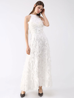 Feder Maxikleid Neckholder Ärmellos A-Linie Elegante Ballkleider & Damenmode > Kleider > Party Kleider