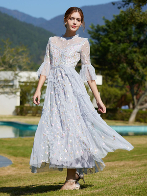 Feen-Partykleid mit bestickten Rüschen fließend elegant Folklore-langes Kleid & Damenmode > Kleider > Party Kleider