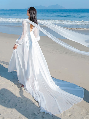 Feenhaftes weißes Maxikleid tiefes V-Rücken-Illusion-Tüll-Overlay-Partykleid & Damenmode > Kleider > Maxikleider
