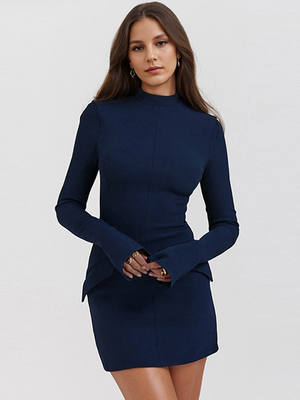 Figurbetonte Kleider Rundhalsausschnitt ausgestellte Ärmel Taschen Party-Bleistiftkleid & Damenmode > Kleider > Etuikleid