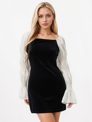 Figurbetonte Kleider Schwarzes eckiger Ausschnitt lässiges langärmliges Bleistiftkleid & Damenmode > Kleider > Etuikleid