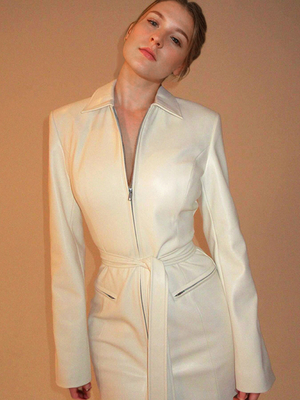 Figurbetonte Kleider weißes Umlegekragen-Schärpen-Chic-Bleistiftkleid mit langen Ärmeln & Damenmode > Kleider > Etuikleid