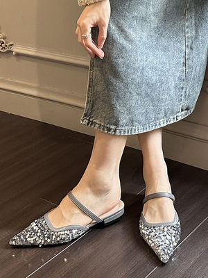 Flache Damen-Pantoletten aus Stoff mit Pailletten und spitzer Zehenpartie & Schuhe > Damen Schuhe > Pantoffel > Mules& Clogs