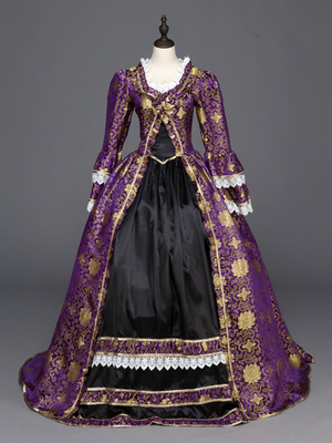 Halloween Mittelalter Kleidung Lange Ärmel Lila und Spitzen und Spitzen Barock Kostüm Rokoko Kleid Renaissance Kleidung Viktorianische Königin Kostüm & Kostüme > Kostüme > Vintage Kostüme > Damen Mittelalter Kleidung
