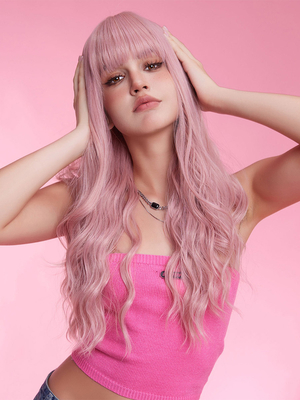Halloween-Perücke lang lockig zerzaust mit Pony Damenhaar in Lachsfarben & Damenmode > Accessories > Damen Perücken > Karneval Perücken