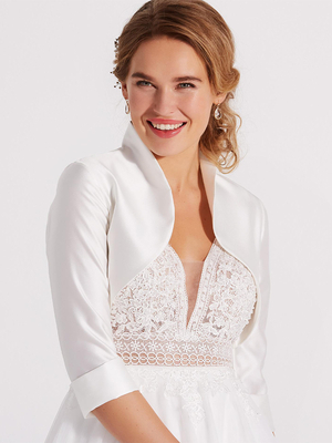 Hochzeitsüberwürfe weiße 3/4-Ärmel entworfener Ausschnitt Oberteile aus Satinstoff Brautüberzüge & Hochzeit > Hochzeit Accessoires > Stolen & Boleros