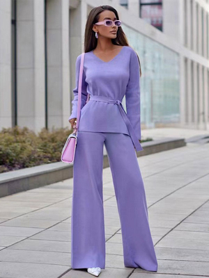 Hosen-Set mit Schärpe einfarbig täglich lässig Herbst Frühling Damenbekleidung & Damenmode > Zweiteiler > Hosensatz