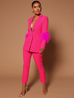Hosen-Set Revers tiefer V-Ausschnitt Federn sexy Damenanzüge & Damenmode > Zweiteiler > Hosensatz