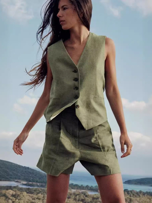 Hosenset aus Baumwollleinen klassisch ärmellos lässig minimalistisch 2-teiliges Set für Damen 2025 & Damenmode > Zweiteiler > Hosensatz
