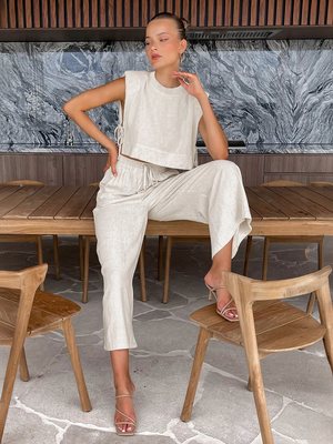 Hosenset aus Baumwollleinen ärmellos mit Schnürung für den Sommer lässig zweiteilig Co-ord Set 2025 & Damenmode > Zweiteiler > Hosensatz