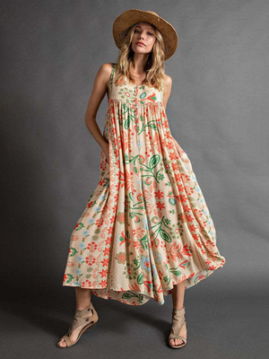 Jumpsuit mit tropischem Druck V-Ausschnitt ärmellos für den Urlaub lässig 1-teiliges Outfit & Damenmode > Overall für Frauen