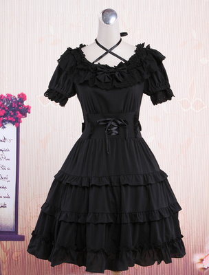 Klassisches schwarzes kurzen Ärmeln Baumwolle Lolita Kleid & Lolita Kleidung > Lolitakleider > Gothic Lolita Kleider