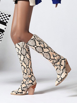 Kniehohe Damenstiefel mit Schlangenmuster und speziell geformten Westernstiefeln & Schuhe > Damen Schuhe > Stiefel > Kneestiefel