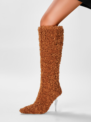 Kniehohe Stiefel aus Kunstpelz mit hohem Absatz braune Stiletto-Stiefel in Knielänge & Schuhe > Damen Schuhe > Stiefel > Kneestiefel