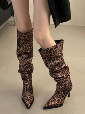 Kniehohe Stiefel für Damen mit Leopardenmuster spitzer Zehenpartie und hohem Absatz Slouch-Stiefel & Schuhe > Damen Schuhe > Stiefel > Overknee Stiefel