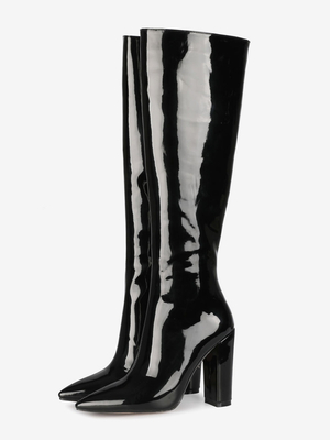 Kniehohe Stiefel Leder Schwarz Spitzschuh Helles Leder Chunky Heel Knielange Stiefel für Frauen & Schuhe > Damen Schuhe > Stiefel > Kneestiefel