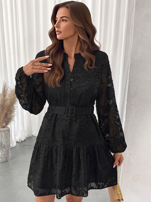 Langärmliges Jacquard-Mini-Skaterkleid mit Gürtel für Herbst 2025 & Damenmode > Kleider > Bluse Kleider