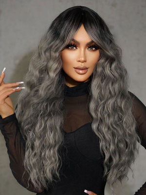 Lange Damenperücke hellgrau lockig Rayon schick geschichtet lange synthetische Perücken & Damenmode > Accessories > Damen Perücken > Kunsthaare > Lange Haare