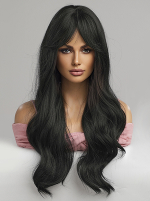 Lange Perücke Für Damen Aus PU Schwarz Hitzebeständige Faser Lange