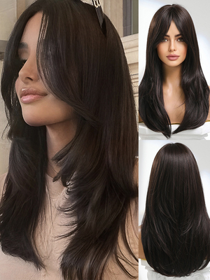 Lange Perücke Für Damen Hellbraun Hitzebeständige Faser Mittellange