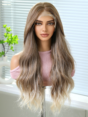 Lange Perücke für Damen hellbraun mit Mittelscheitel hitzebeständige Faser hervorgehobenes Haar lange synthetische Perücken & Damenmode > Accessories > Damen Perücken > Kunsthaare > Lange Haare