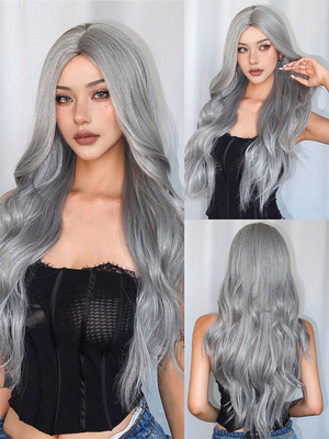Lange Perücke Für Damen Hellgrau Gekräuselte Locken