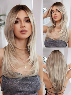 Lange Perücke für Damen hellgrau hitzebeständige Faser mittellange Kunsthaarperücken & Damenmode > Accessories > Damen Perücken > Kunsthaare > Lange Haare