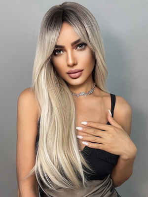 Lange Perücke für Frauen hellgolden mit Mittelscheitel hitzebeständige Faser mittellange Kunsthaarperücken & Damenmode > Accessories > Damen Perücken > Kunsthaare > Lange Haare ...