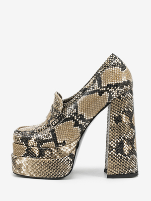 Loafer mit hohem Absatz und Schlangenmuster Plateau runder Zehenpartie und klobigem Absatz & Schuhe > Damen Schuhe > Flache Schuhe & Loafers > Loafer