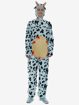 Lustiger Kigurumi-Einteiler für Erwachsene mit Kuh-Motiv und Mütze & Kostüme > Kostüme > Empfohlene Kostüme > Kigurumi Kostüme > Erwachsene Kigurumi