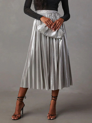 Metallic-Vollrock-Akkordeonrock mit hoher Taille täglicher Freizeitrock & Damenmode > Bottoms für Frauen > Röcke