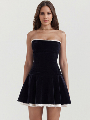 Mini-Schößchenkleid schulterfrei mit Schnürung am Rücken und kontrastierenden kurzen Kleidern & Damenmode > Kleider > Party Kleider