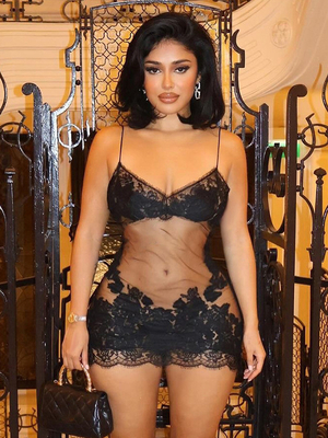 Minikleid mit transparentem Spitzennetz und figurbetontem Träger für den Club 2025 & Damenmode > Club- & Discomode > Klub Mode