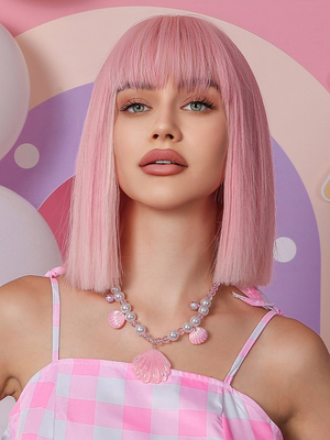 Mittellange Perücken mit rosa Pony Kunsthaarperücke aus Viskose für Frauen & Damenmode > Accessories > Damen Perücken > Kunsthaare > Mittele Haare
