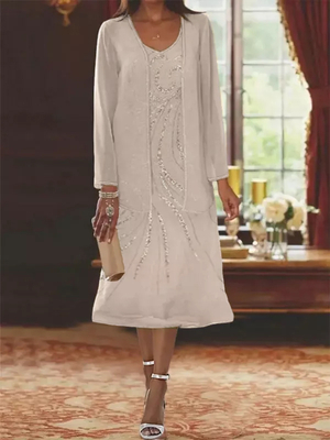 Mutterkleid mit Ausschnitt und langen Ärmeln zweiteilig Pailletten Gastkleider für die Hochzeit & Hochzeit > Abendkleider für Hochzeit > Brautmutterkleider